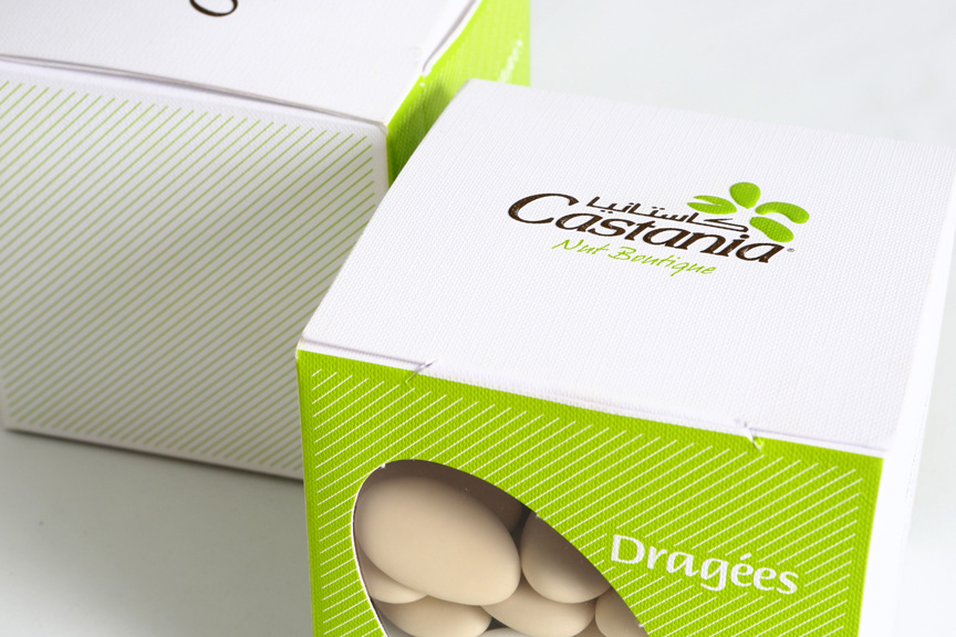 A Dragees package for Castania Nut Boutique, located in Beirut and Kuwait; a refined boutique for nuts, dried fruits and specific sweets.